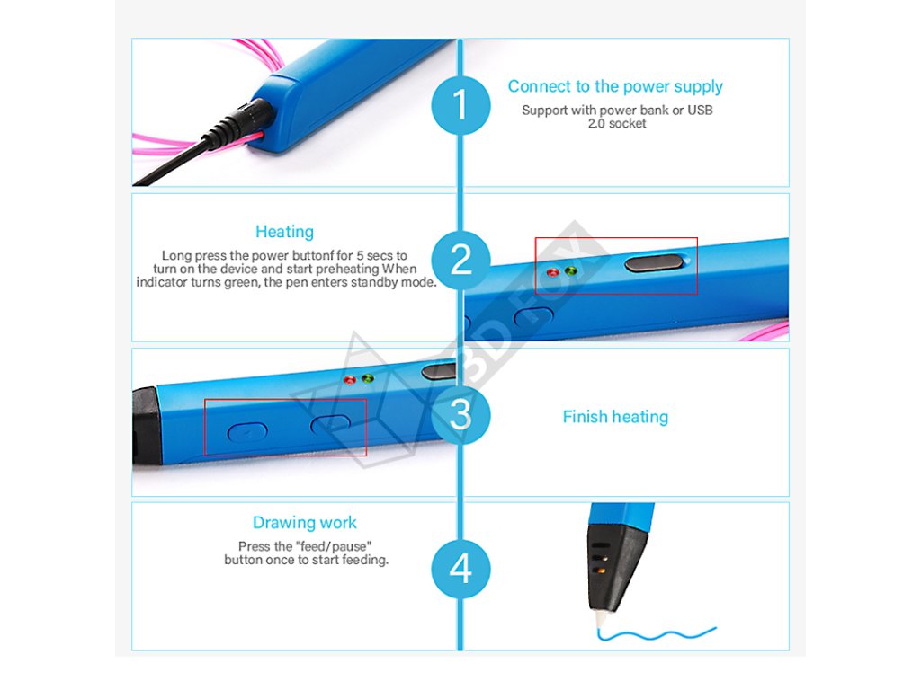 Pero se napájí prostřednictvím USB-C a po zahřátí je ihned připraveno k práci. Vkládání i vysouvání filamentu probíhá jednoduše stiskem tlačítka. K dispozici je také trvalý režim kreslení, který se aktivuje dvojitým stiskem, takže není nutné držet tlačítko po celou dobu používání.