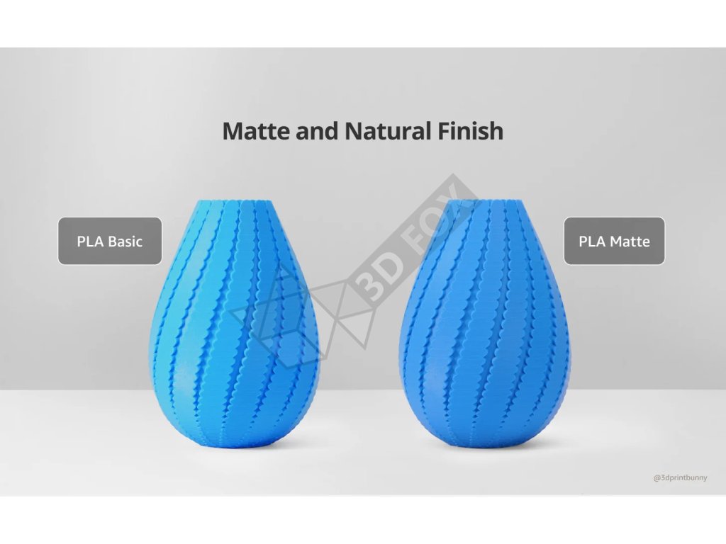 - Matný povrch: Bambu Lab PLA Matte poskytuje matný finiš, který se hodí pro tisk modelů, kde je důležitý estetický vzhled a kvalitní povrch bez lesku.