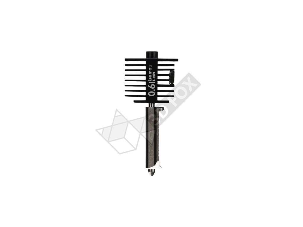 Hotend Bambu Lab se vyznačuje inovativním designem „all-in-one“: heatsink, heatbreak, heaterblock a tryska jsou integrovány do jednoho kusu.