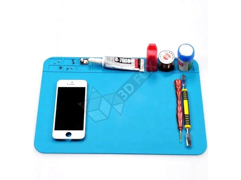 Multifunkční, antistatická silikonová servisní podložka. Povinná výbava každého amatérského i profesionálního kutila. Značně usnadňuje všechny typy oprav a pájení elektroniky. Odolné vůči vysokým teplotám (až 500 stupňů Celsia) a deformacím. Vybaveno mnoha přihrádkami v horní části karimatky.