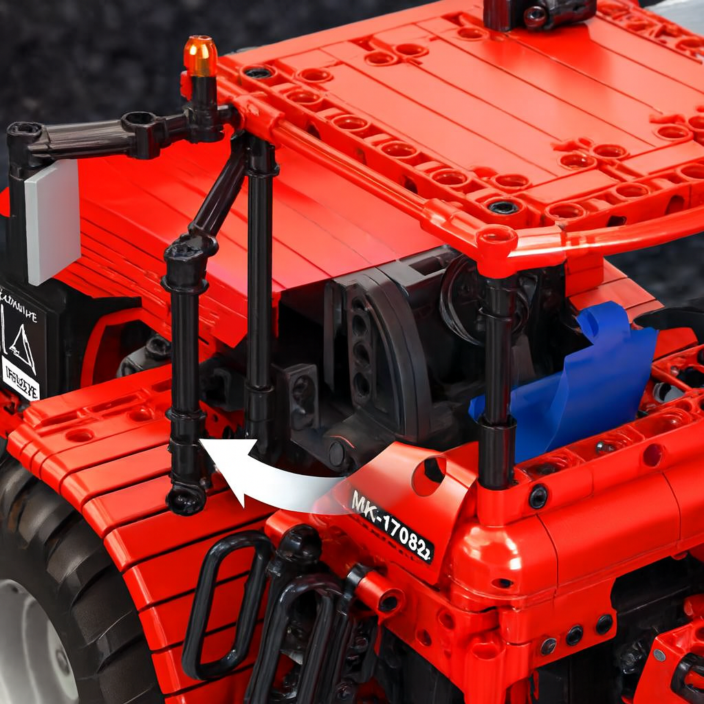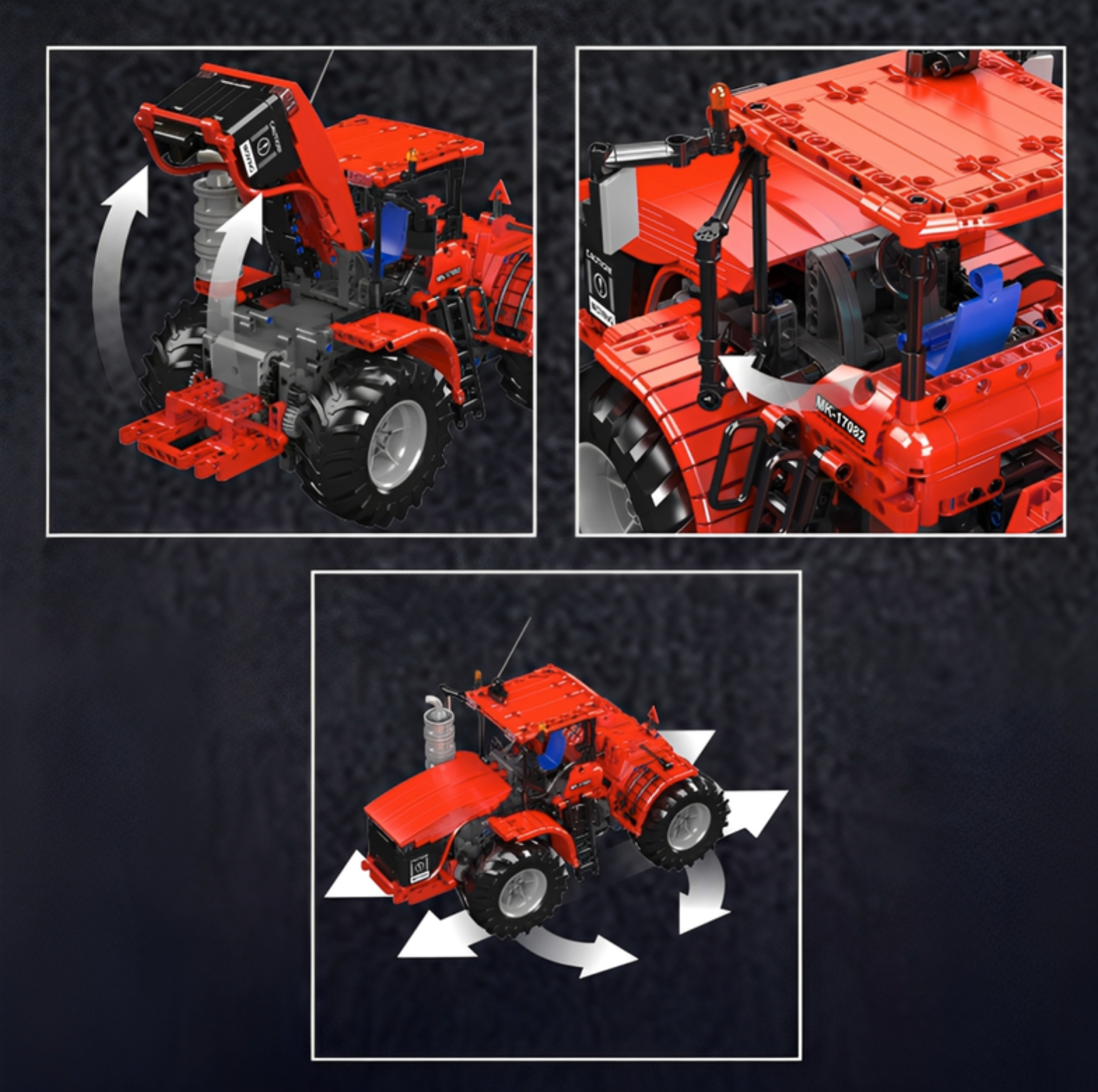 Detailně zpracovaný model zemědělského kolového traktoru Challenger demonstruje pokročilou integraci mechanických systémů do kompaktního celku v měřítku 1:20. Stroj je plně motorizován a využívá centrální napájecí a řídící modul MK 3.0. Dominantním technologickým prvkem je plně funkční kloubové řízení (articulated steering), které stroji zajišťuje vysokou manévrovatelnost a reálnou kinematiku průjezdu terénem i přes osazení masivními pneumatikami s hlubokým zemědělským dezénem.