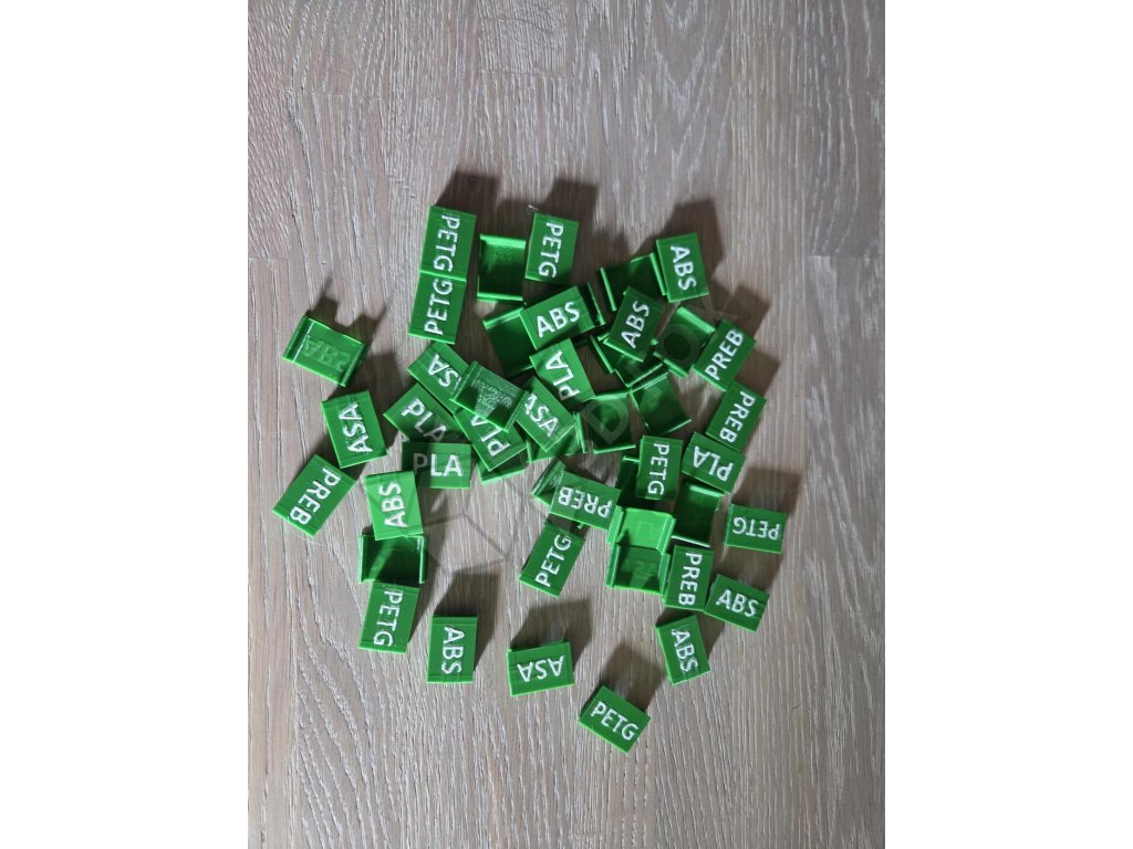 Rozlišovač materiálů jsme vyvinuli exkluzivně pro naše 3D FOX špulky a refilly, aby bylo vždy na první pohled jasné, s jakým filamentem pracujete. Díky jednoznačnému označení jednotlivých typů (PLA, PETG, ABS, ASA) se vyhnete omylům a budete mít své tiskové materiály vždy přehledně roztříděné.